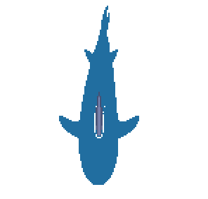 The shark is far to the EAST